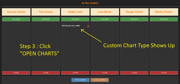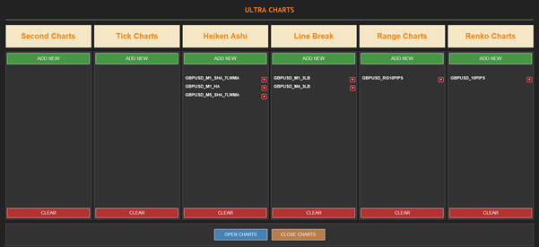 - Clear: Closes & removes all currently displayed custom charts for the chart type