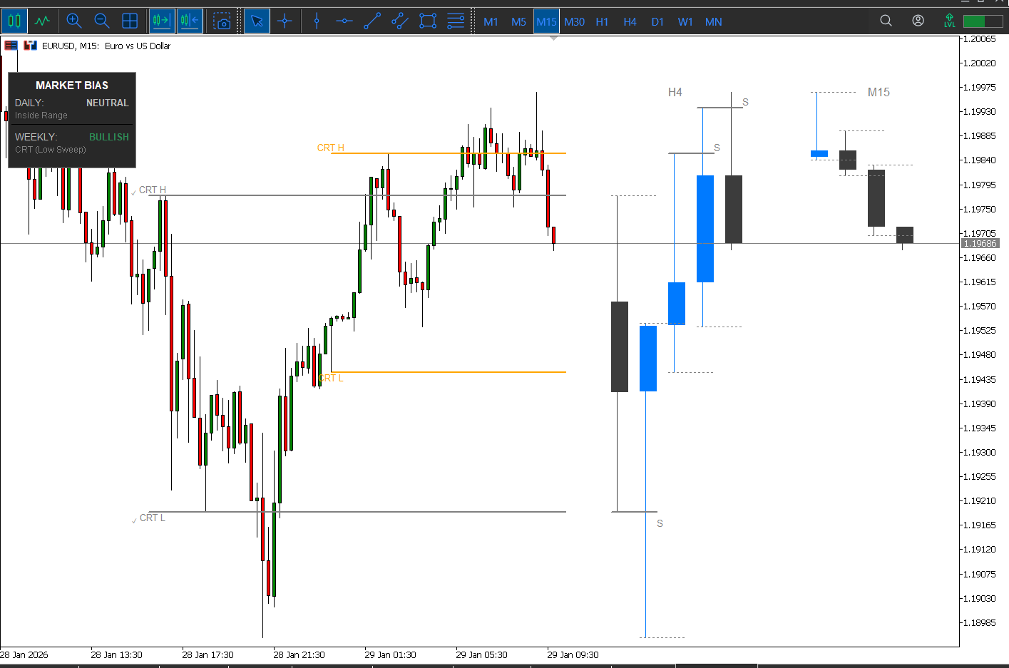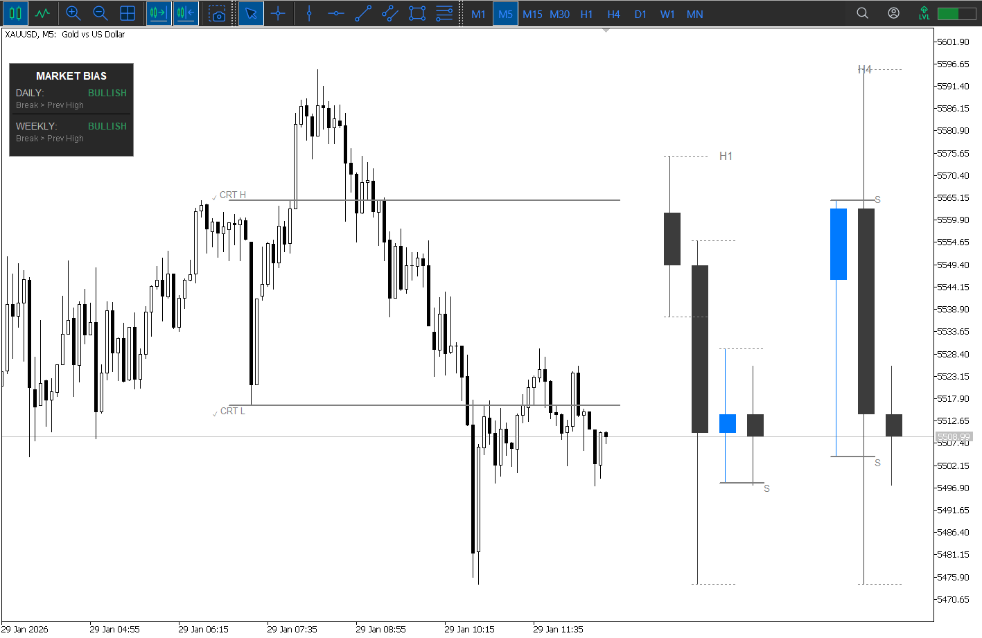 Applying CRT + Higher-Timeframe Fractal Logic on a Live Chart