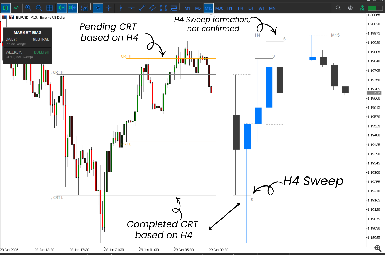 This is where many traders make mistakes — treating pending CRT as an entry signal.