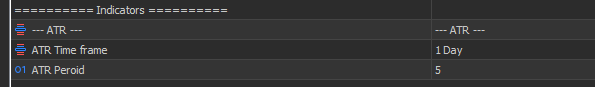 Settings of the ATR indicator, by which the grid step is calculated when selecting the “Grid STEP mode” parameter = 4) ATR * Ratio step .