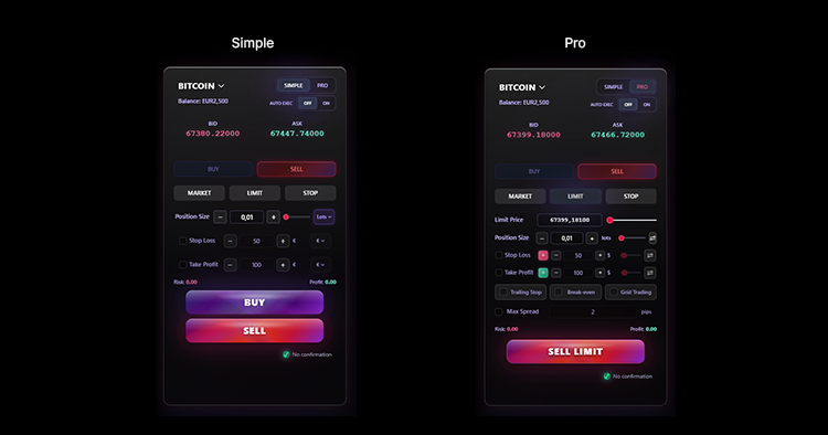 Pulsar Terminal offers two distinct trading panels to match your experience level and trading style.