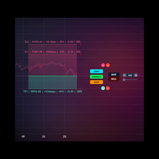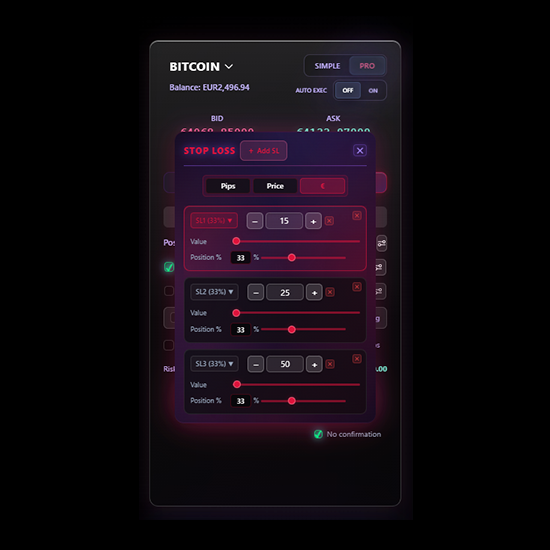 You can set up to 5 Take Profit levels and 5 Stop Loss levels per trade. Each level has: