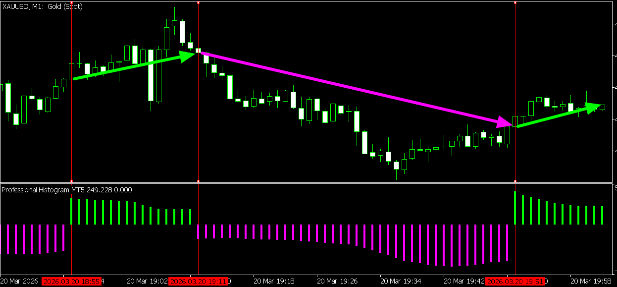 I was trading XAUUSD on the M1 timeframe. Sometimes the simplest tools work best. I used my own indicator, Professional Histogram.