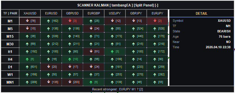 Scanner Kalman [tambangEA] is a multi-symbol, multi-timeframe trend scanner built to help you spot market direction faster and read momentum more clearly.