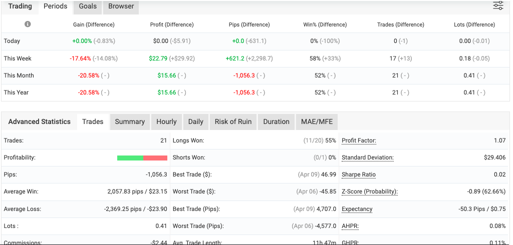 At first glance, the system showed solid trade activity and decent accuracy, but overall account growth was affected by earlier drawdowns.