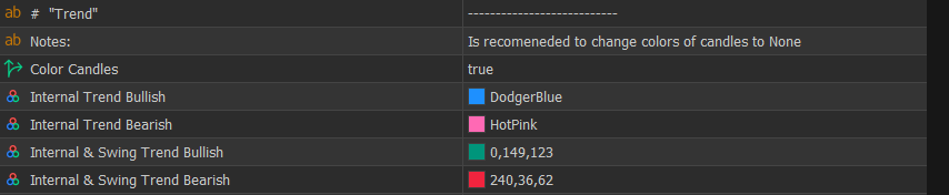 Internal Trend Bullish β Defines the candle color when the internal (short-term) trend is bullish.