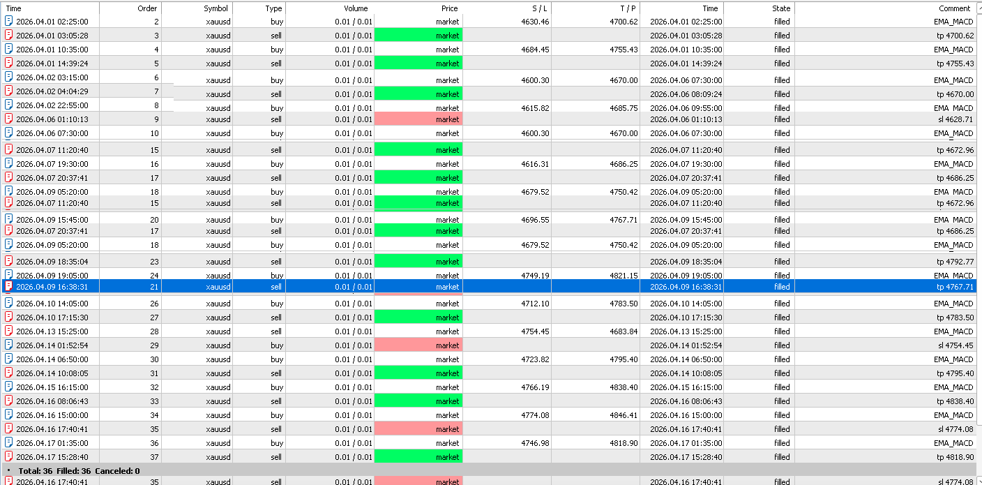 On April 1st, we began this journey with a $500 account, powered by our EMA + MACD-based Expert Advisor on XAUUSD (M5 timeframe).