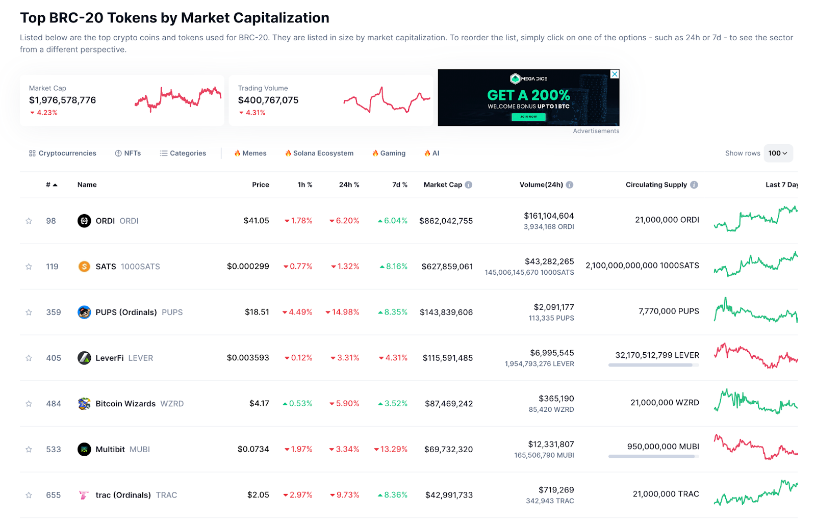 The market value (market capitalization) of BRC-20 tokens is today a little shy of a whopping $2 billion.