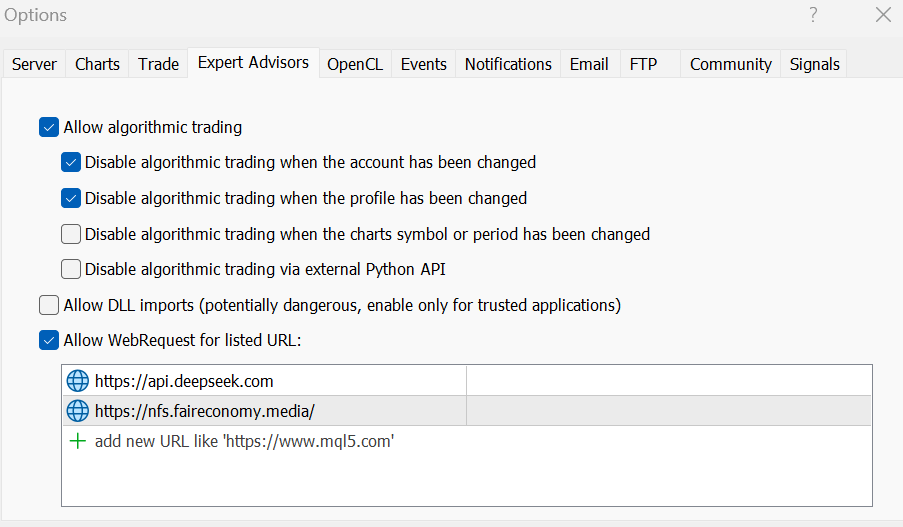 How to Enable URLs for Expert Advisor Functionality in MetaTrader 4 & 5