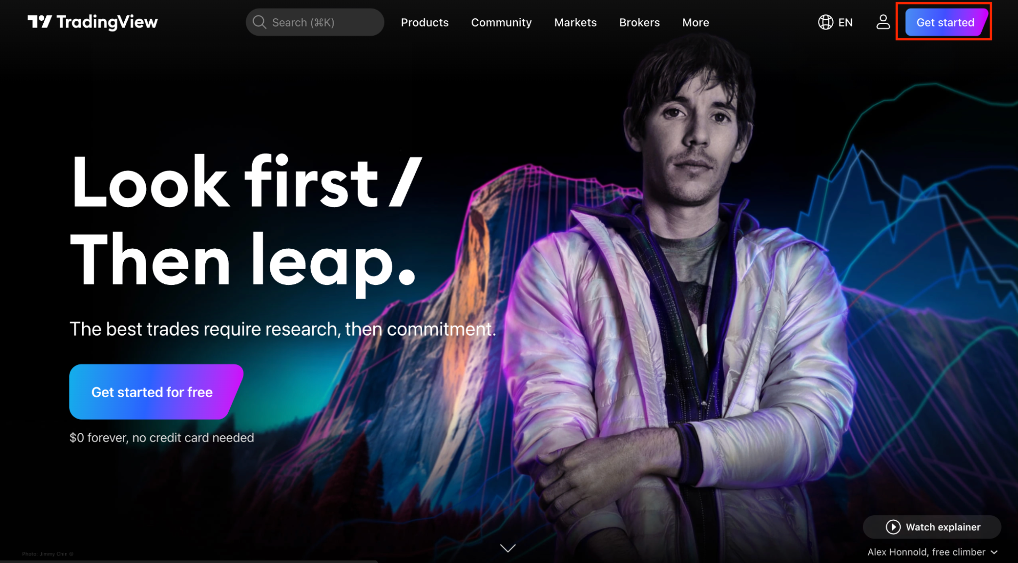 Head over to TradingView.com and click “Get Started”. If you already have an account, please disregard this step and log in to your existing TradingView account.