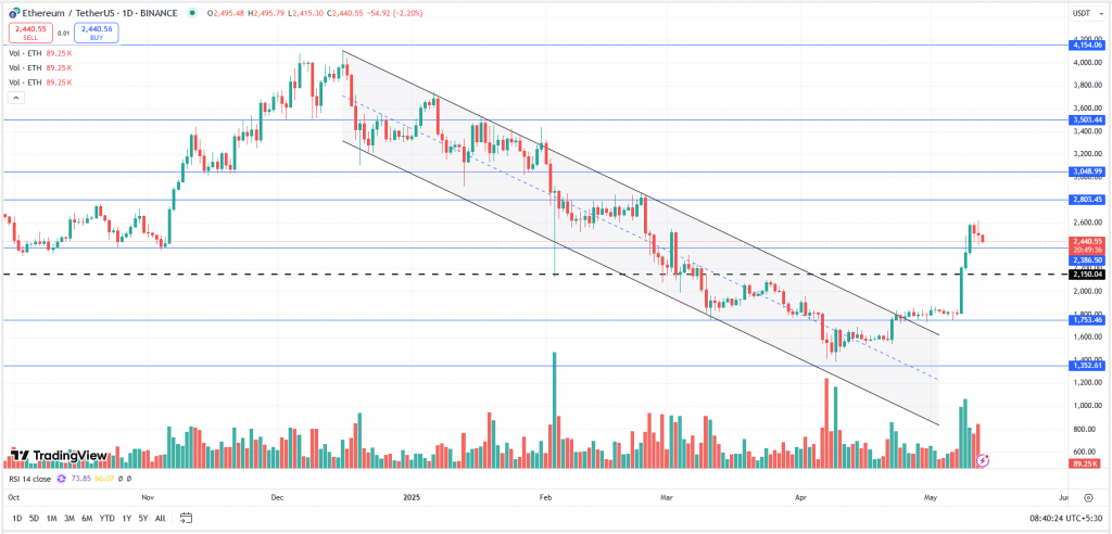 Ethereum is showing strong signs of a trend reversal after an impressive 45% rally last week, reclaiming major technical levels and reigniting optimism in the broader altcoin market. The surge has brought ETH back into key resistance zones, which, if broken, could signal the beginning of a sustained altseason. This renewed momentum follows a prolonged period of bearish sentiment and relative underperformance, making the current breakout all the more significant. Analysts suggest that Ethereum’s price action could serve as a catalyst for renewed investor interest in altcoins, potentially setting the stage for a broader market recovery.