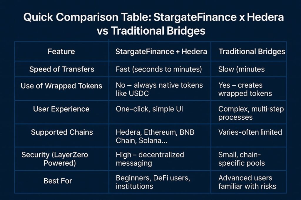 Quick Comparison Table: StargateFinance x Hedera vs Traditional Bridges