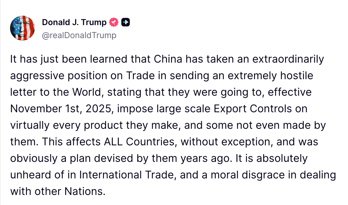 Trump Slaps China With 100% Tariff, Crypto Market Crashes