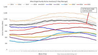 The red line is for 2025. The black line is for 2019. Note that inventory is up 14% compared to the same week last year.