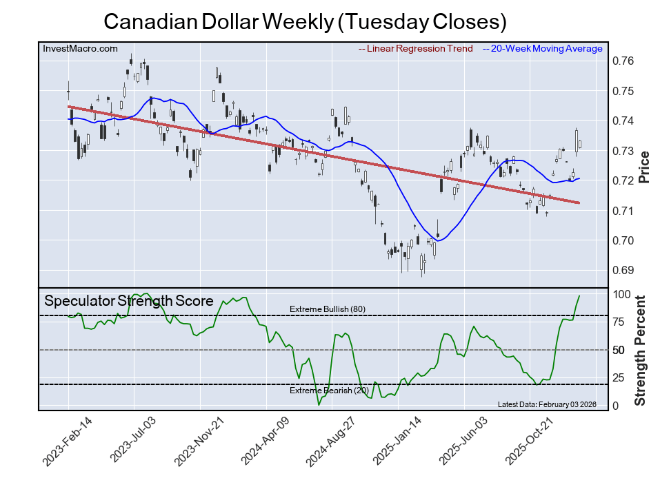 The Canadian Dollar speculator position comes next in the extreme standings this week with the CAD speculator level now at a 98 percent score of its 3-year range.