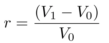 \frac{(V_1 - V_0)}{V_0} &= \left\{ \frac{[V_0 \times (1 + r)] \times [1 + fx] - V_0}{V_0} \right\} \approx r + fx, \\