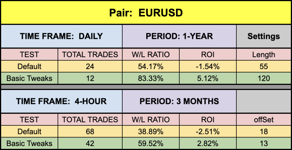 Our signals weren’t that bad on the default settings. Granted, 55 is a bit long with regard to the number of periods for consideration, so fooling with the length may improve on the results.