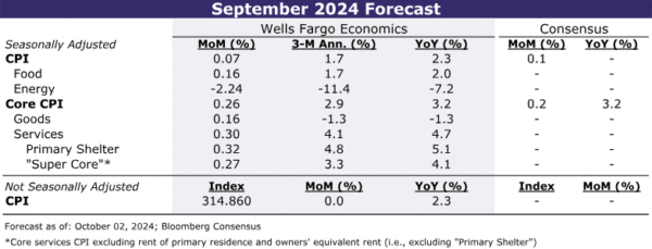 The overall progress in reining in decades-high inflation should be on display with the September CPI report. We look for the headline to advance 0.1%, which would bring the year-over-year rate down to 2.3% and point to headline PCE rising 2.0%—directly on the FOMC’s target in what will be the last read on inflation before the Committee’s November 7 meeting.