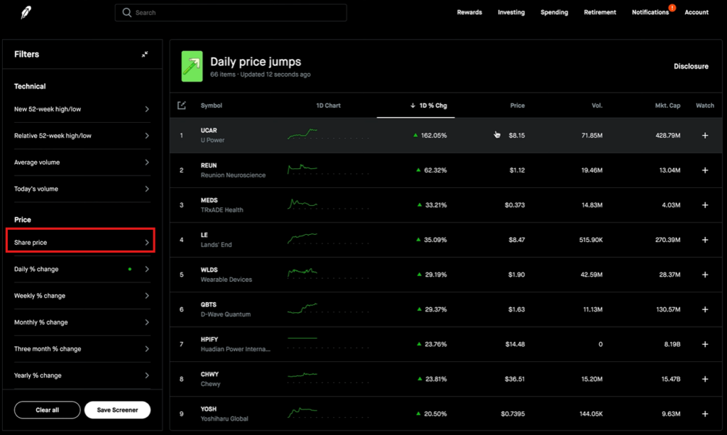 Many stock traders get overwhelmed trying to track too many stocks at once in this price range. Keep it simple. RobinHood‘s built-in screener helps identify these opportunities, though it’s more basic than professional tools.