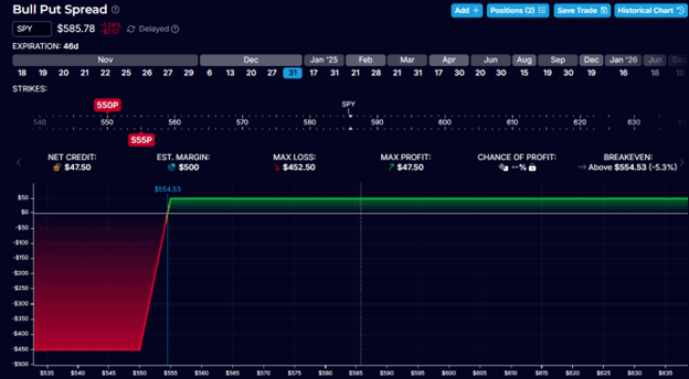 Sell two December 31 SPY 586 put @ $9.72