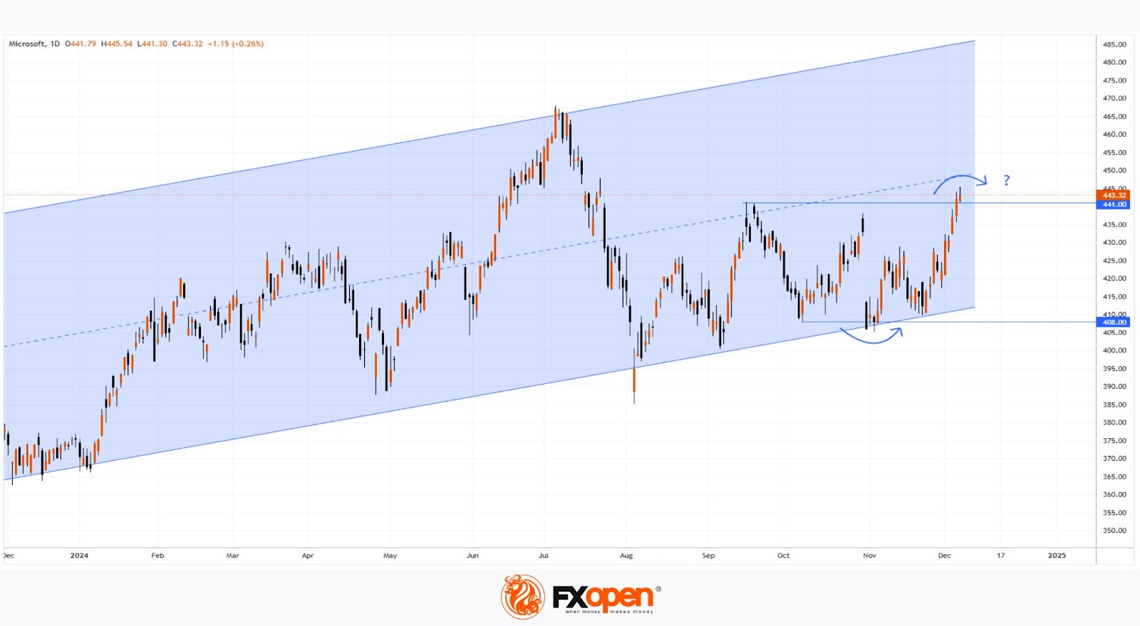 On Friday, MSFT stock climbed to $445, its highest level since mid-July, buoyed by news that OpenAI may grant Microsoft access to key AI-related technologies.