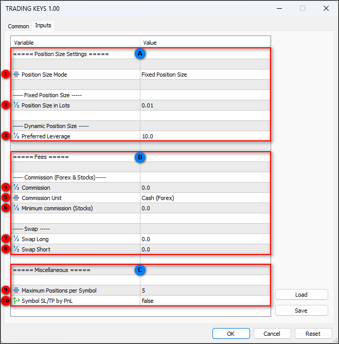 (10) Symbol SL/TP by PnL: by default is set to false (disabled)