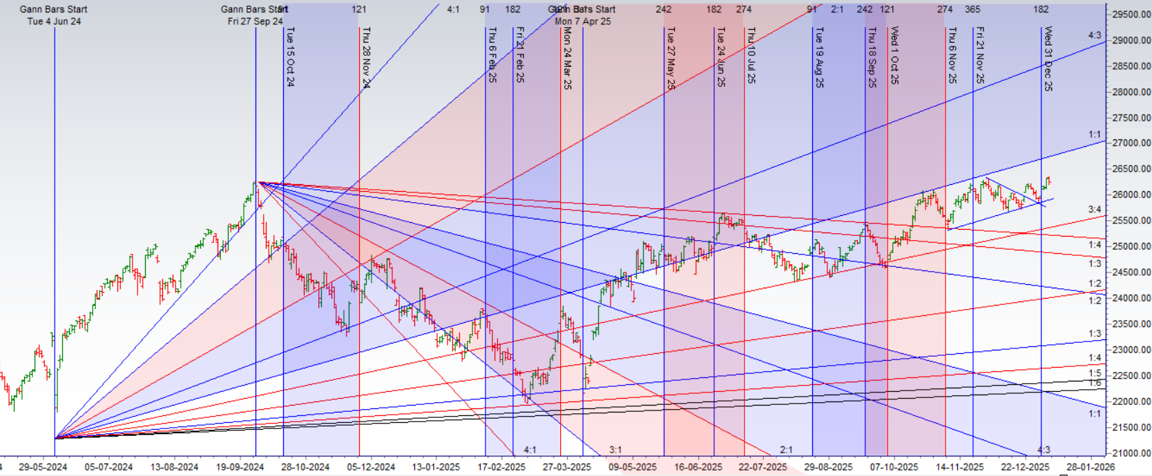 Weakness (Downside): The trend technically weakens if the index slips below 26144 . This could open the path towards support levels at 26108, 26066, and 26012.