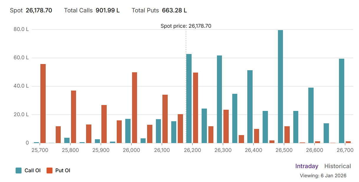 Resistance: A colossal “Great Wall of Calls” has been erected at the 26,500 strike, which serves as the ultimate ceiling for the current series. The immediate and most critical resistance zone is the 26,200-26,300 area itself.