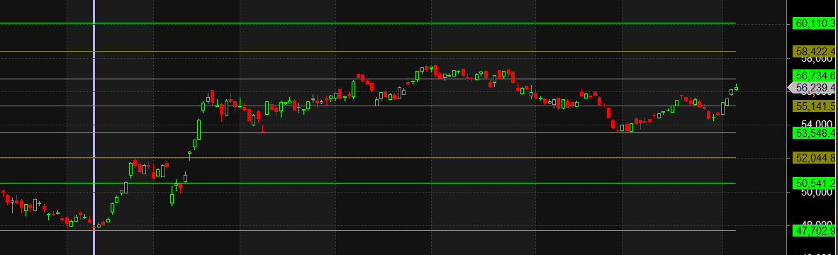 BANK Nifty Gann Monthly Trend Change level 54422 closed above it.