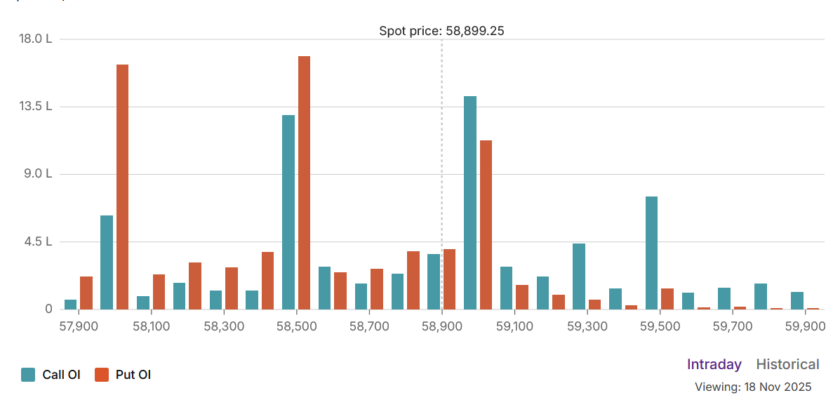 Immediate Resistance / Central Pivot: The new Max Pain point of 58,500 is now the central battleground. It will act as a powerful magnet and the primary pivot around which the market will likely trade.
