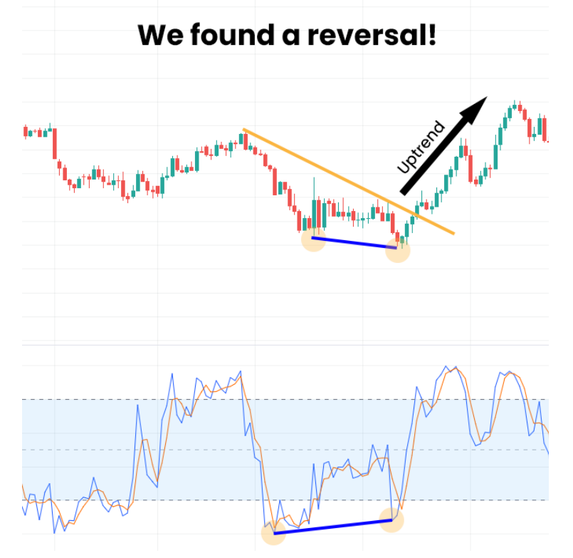 This means that there is a divergence between what the stochastic is indicating and how the currency pair is behaving overall. It may mean that the downtrend is coming to an end and it is finally time to purchase the pair. Let’s see how we did: