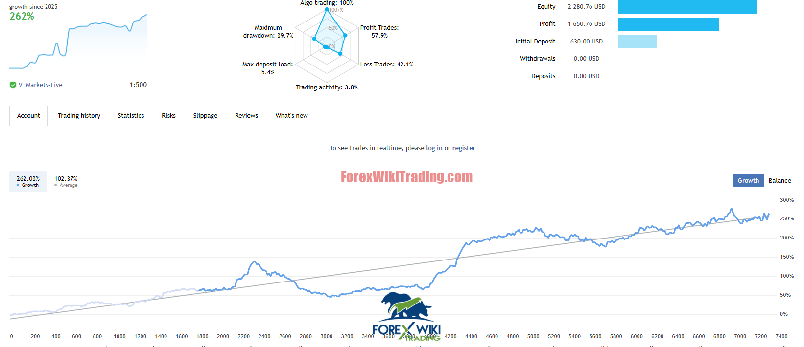 | Growth | 262% | Total return on initial deposit, indicating strong profitability over the period. |