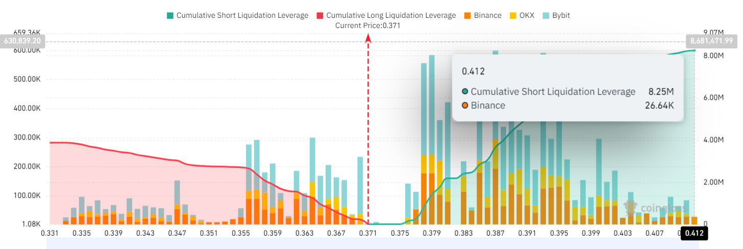 As data from the Coinglass Liquidation Map (LM) shows, futures traders have identified an opportunity to use short ADA. Currently, the cumulative Short liquidity leverage is larger in contrast to longs. This imbalance suggests that the overall market is bearish on Cardano since traders anticipate that the ADA price will fall lower.