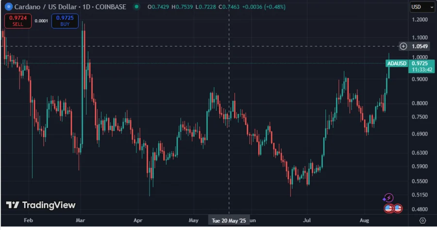 ADA Sees 33.6% Weekly Surges To $0.9899 Amid Cardano ETF Anticipation, Network Upgrades