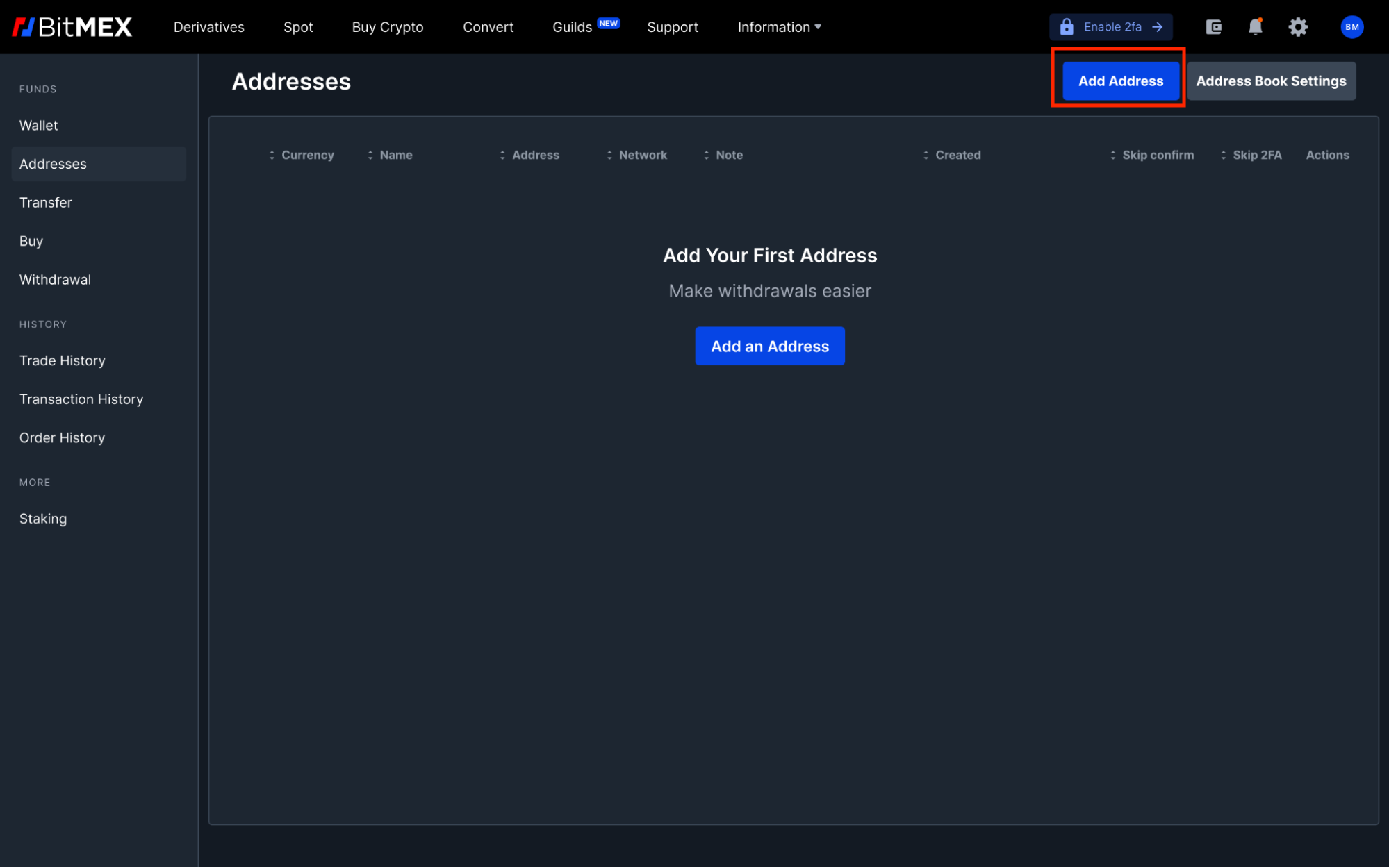 With the address book, users on BitMEX can save particular addresses with customisable names for their asset withdrawals. This eliminates the need for them to repeatedly enter the addresses they regularly use when initiating withdrawal requests.