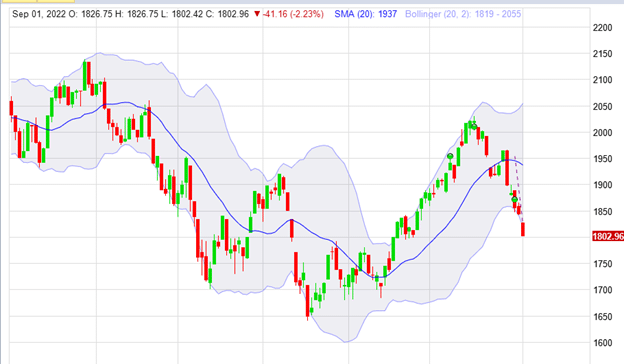 On September 1, the RUT is moving down rapidly.