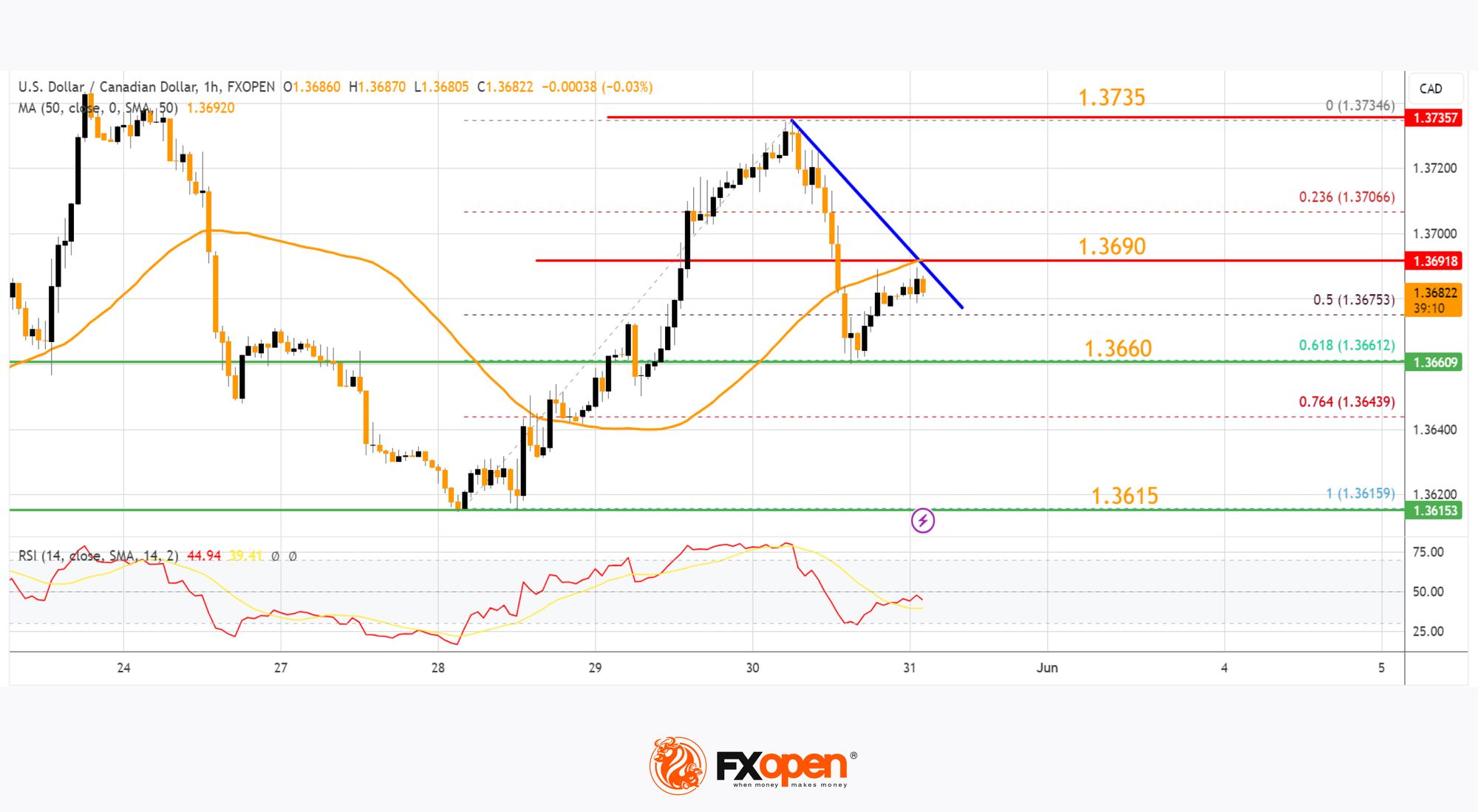 On the hourly chart of USD/CAD at FXOpen, the pair formed a strong support base above the 1.3600 level. The US Dollar started a fresh increase above the 1.3660 resistance against the Canadian Dollar.