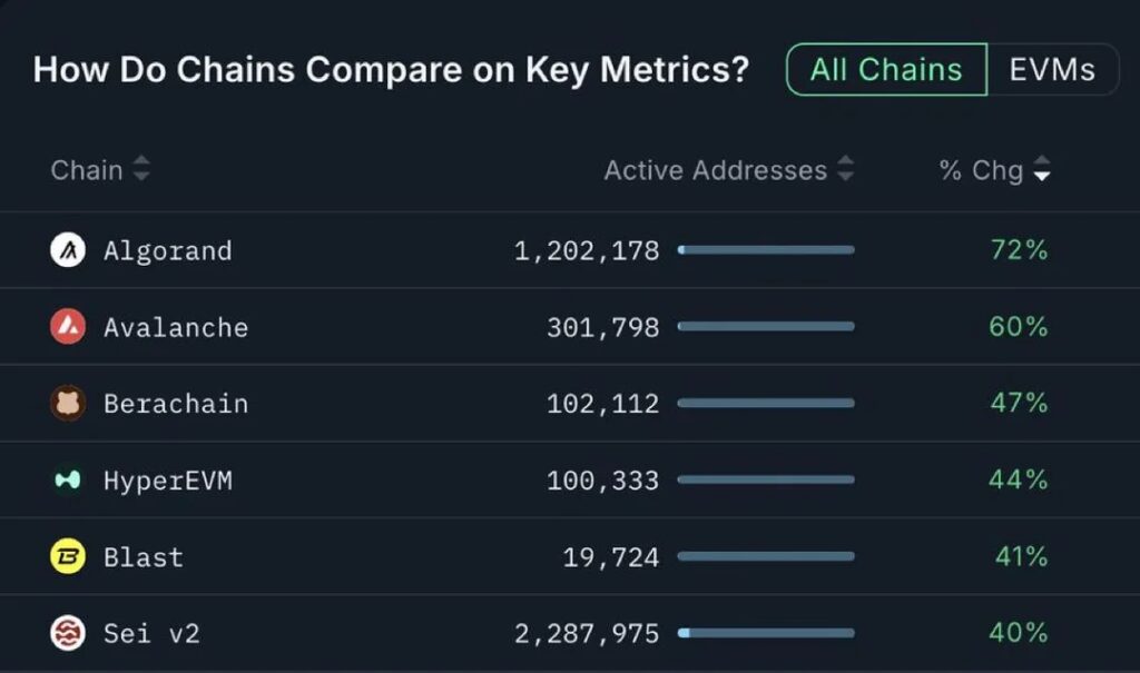 Despite recent setbacks, on-chain data from Nansen reveals that Algorand led in active address growth last week, indicating strong underlying user activity.