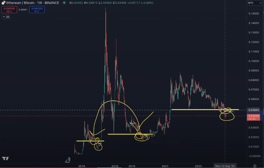 “Ethereum/Bitcoin has broken down three times in its history once in 2016, once in 2019. Anyhow again once in 2024.”