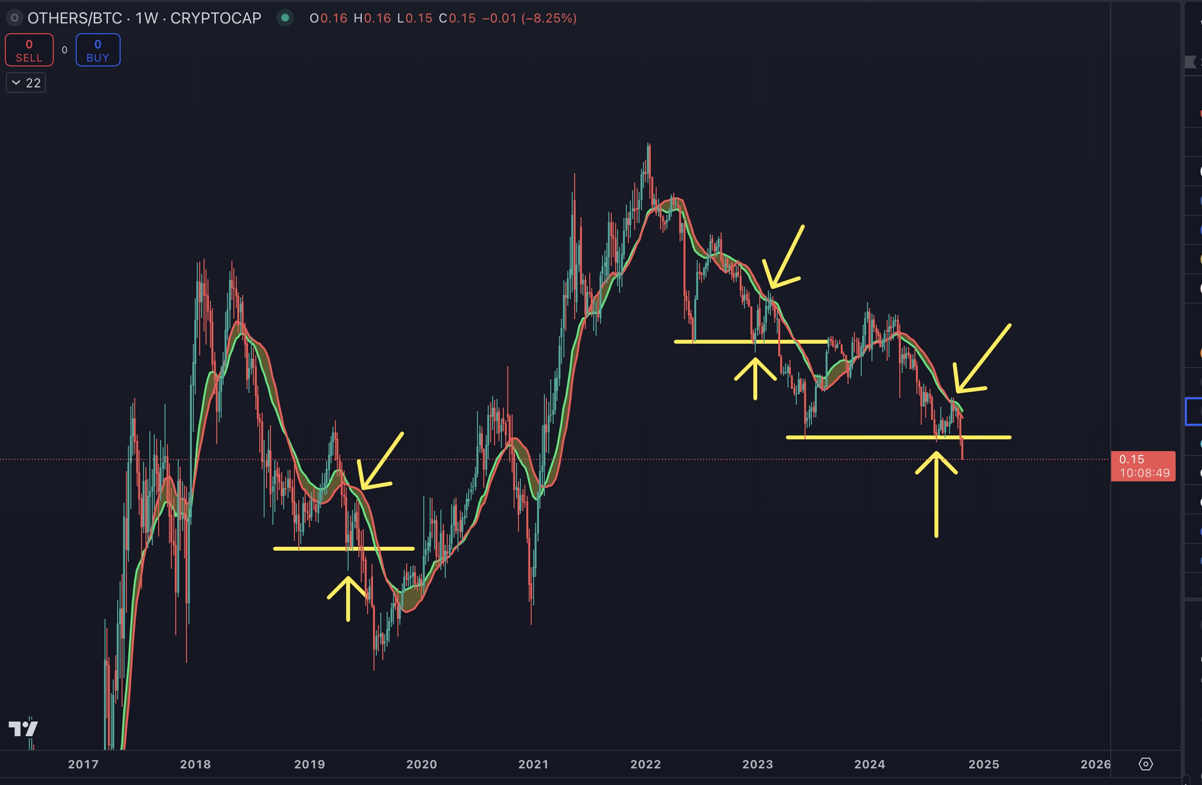 “I warned that OTHERS/BTC would sweep the lows, rally to the BMSB (bull market support band) then get rejected and put in new cycle lows.