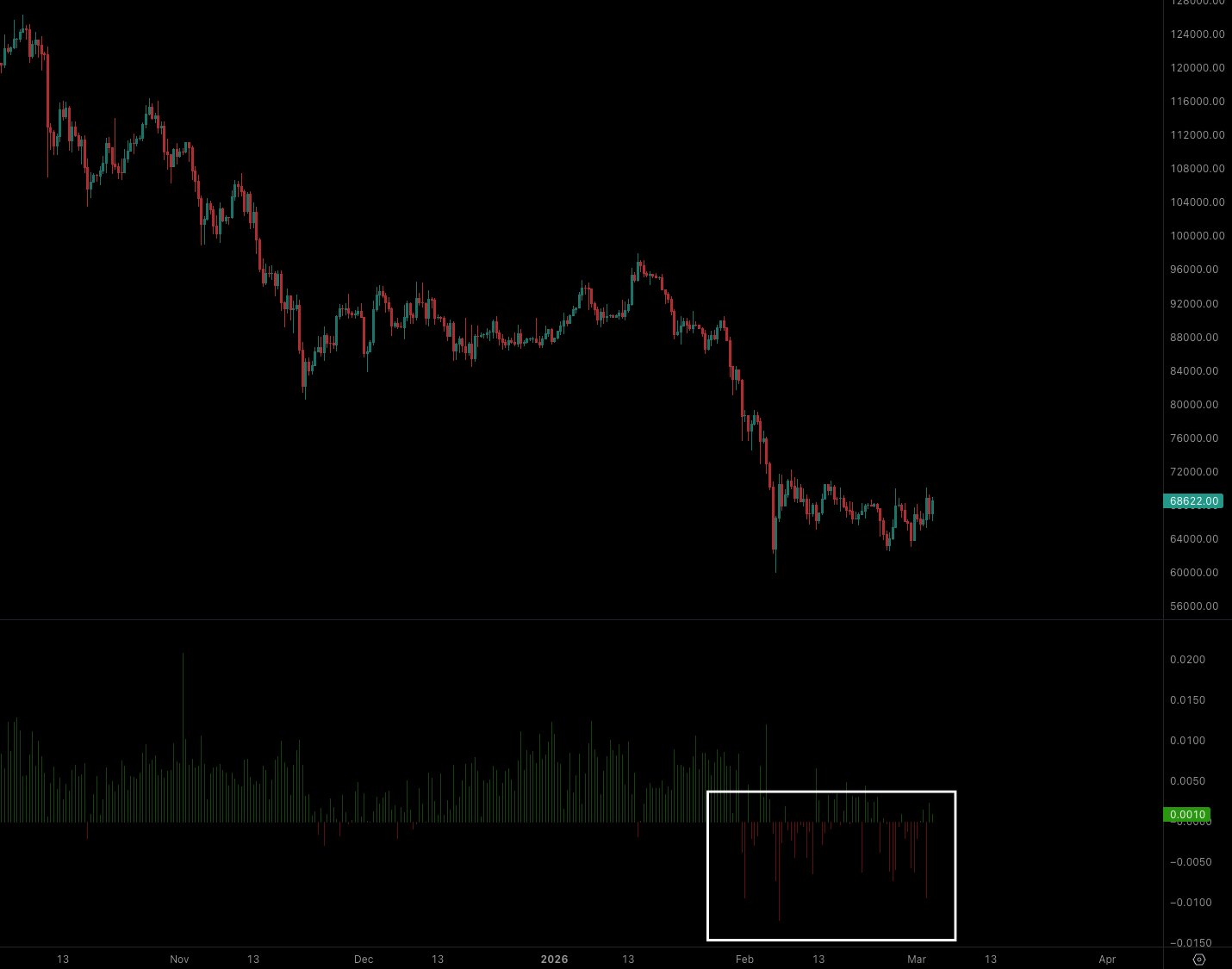 “10-D RSI reaching oversold zone. This is literally the first time in the history of Bitcoin.”