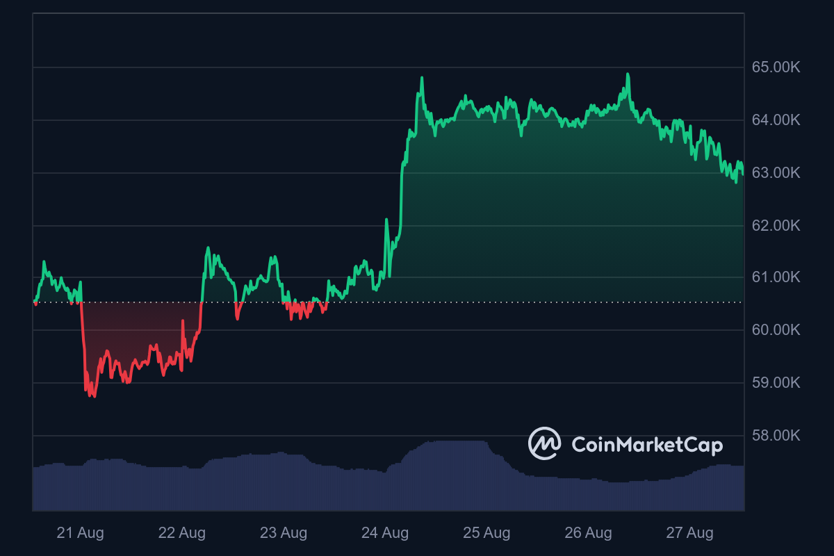 - Bitcoin has repeatedly failed to breach the US$65K mark, indicating a potential resistance level.