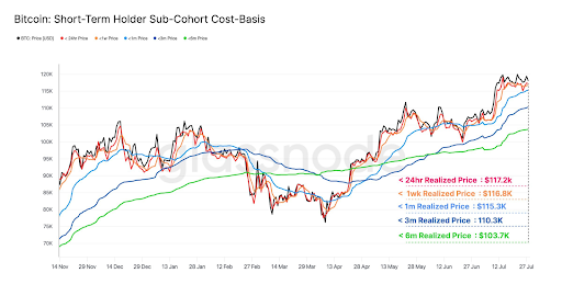 Add to the fact that BTC is holding above short-term holder cost bases at $110,000–$117,000, strong support and bullish resilience becomes apparent.