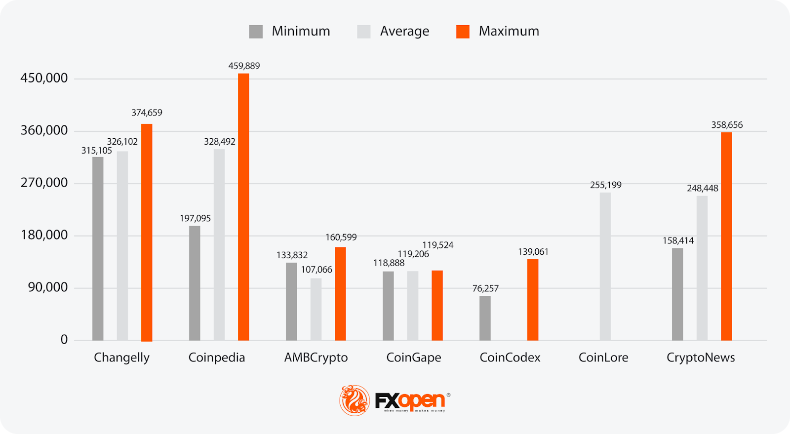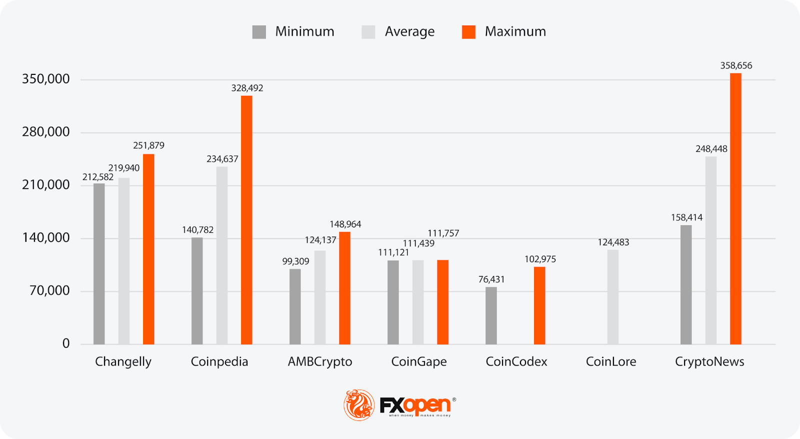 - Most Bullish Projection: 358,656 (CryptoNews)