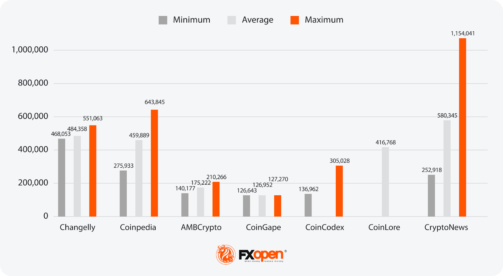 - Most Bullish Projection: 1,154,041 (CryptoNews)