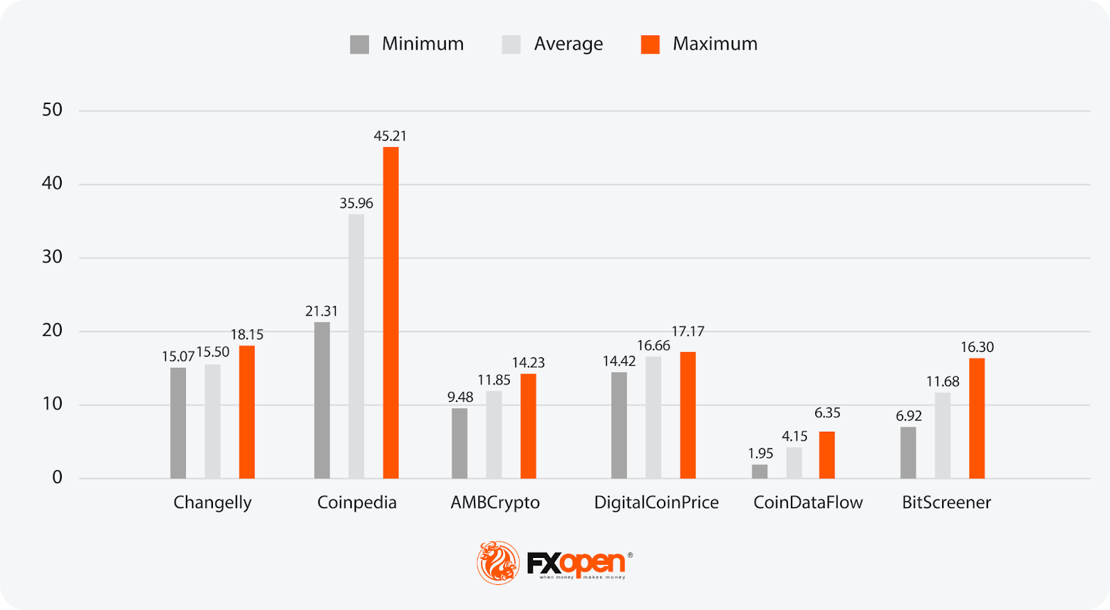 - Most Bullish Projection: 21.31 (Coinpedia)