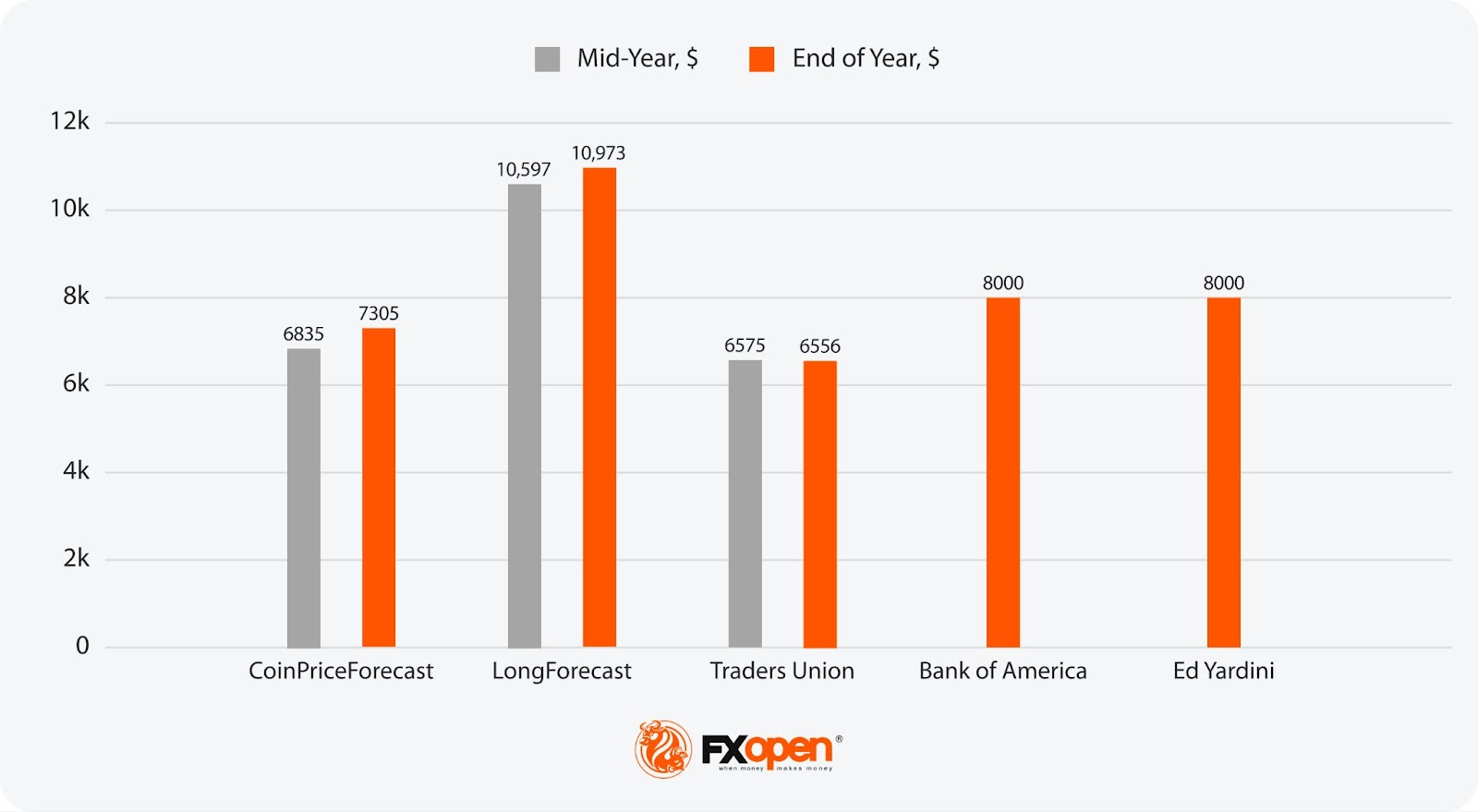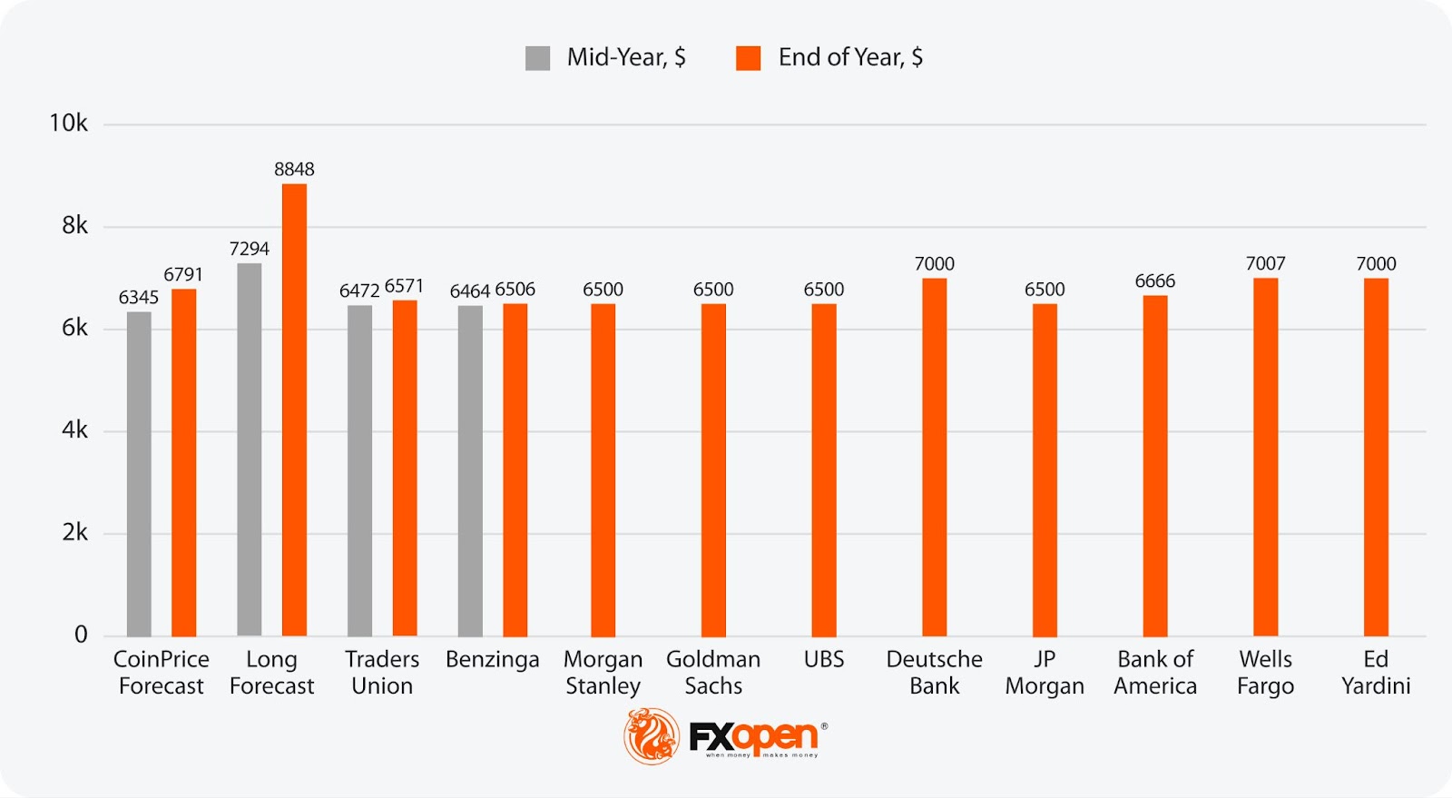 Following the bullish 2024 stock market predictions, analysts project that the S&P 500 could reach between 6,345 and 7,294 by mid-2025, and between 6,500 and 8,848 by year-end. These estimates are based on anticipated corporate earnings growth and favourable economic conditions.
