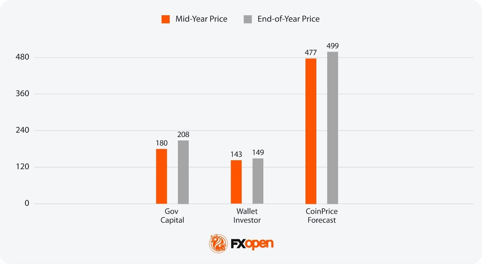 - Most Optimistic Projection for End-of-Year 2030: $499 (CoinPriceForecast)
