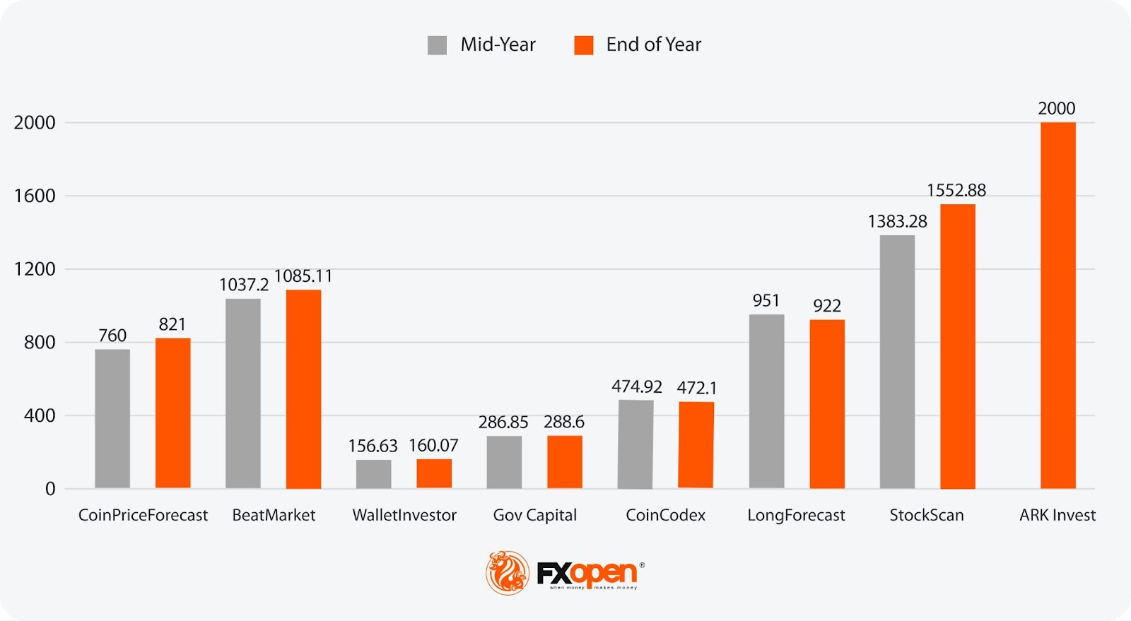 - Most Bullish Projection: 2000 (ARK Invest)