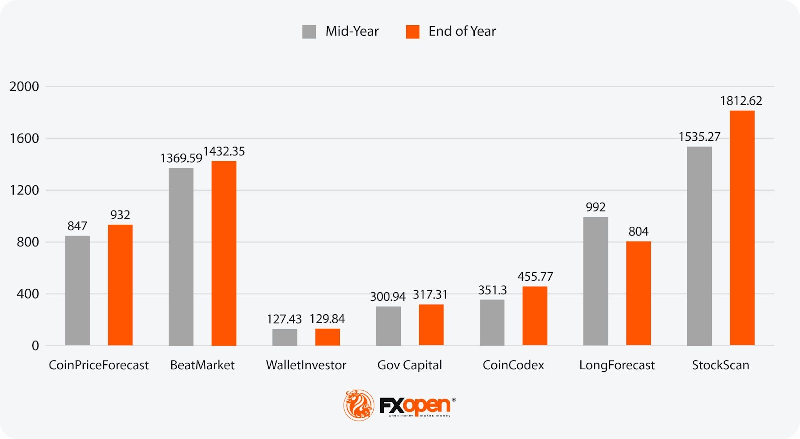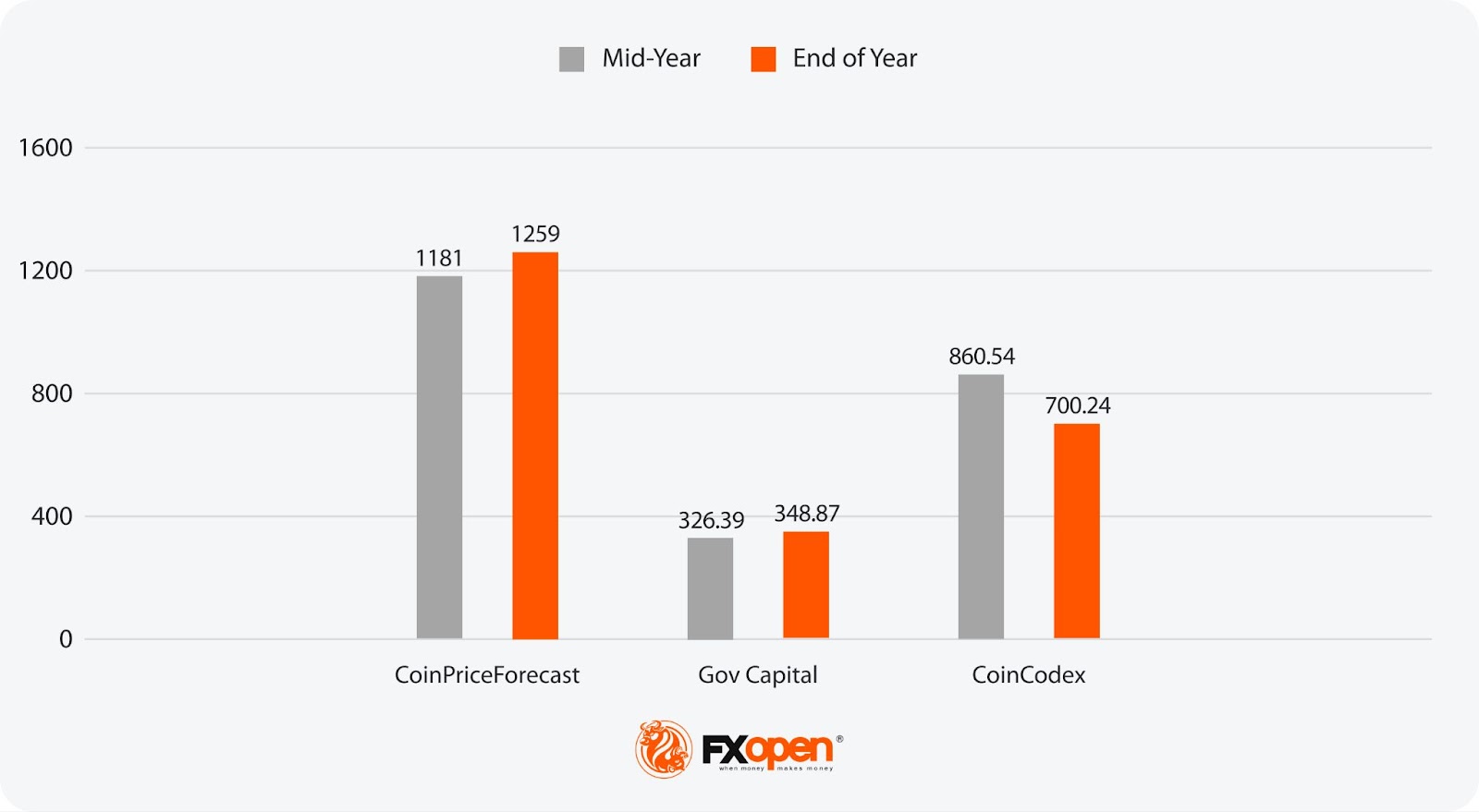 - Most Bullish Projection: 1259 (CoinPriceForecast)
